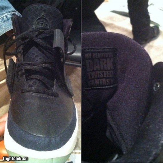 前不久曾曝光的黑色皮质Nike Air Yeezy 2样品再次曝出细节谍照,此番透露的是样品设计的主题,来自Kanye West的第五张个人专辑“My Beautiful Dark Twisted Fantasy”,专辑名镭射于鞋舌内侧皮标。