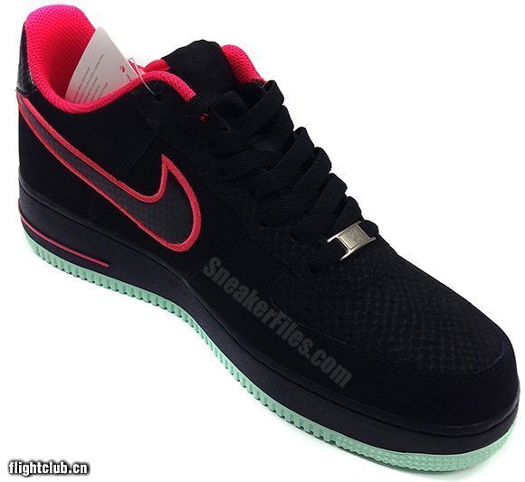 常有球鞋定制者会选择Air Yeezy 2作为定制球鞋的灵感,而现在Nike官方则打造了一双以Yeezy作为设计主题的Air Force 1。黑色牛巴革鞋身配上鳞片纹理材质,细节辅以太阳红,大底则呈现夜光材质的色彩。暂时没有市售信息。
