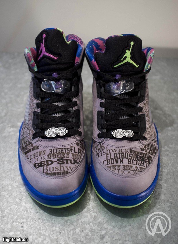 Absolelute为来自布鲁克林的Kiccz打造了一双“布鲁克林的新鲜王子”Air Jordan 5。选用近日热门鞋款Air Jordan 5 Bel-Air做为模板,鞋身镭射巴克莱中心等布鲁克林地标建筑,融合味十足。