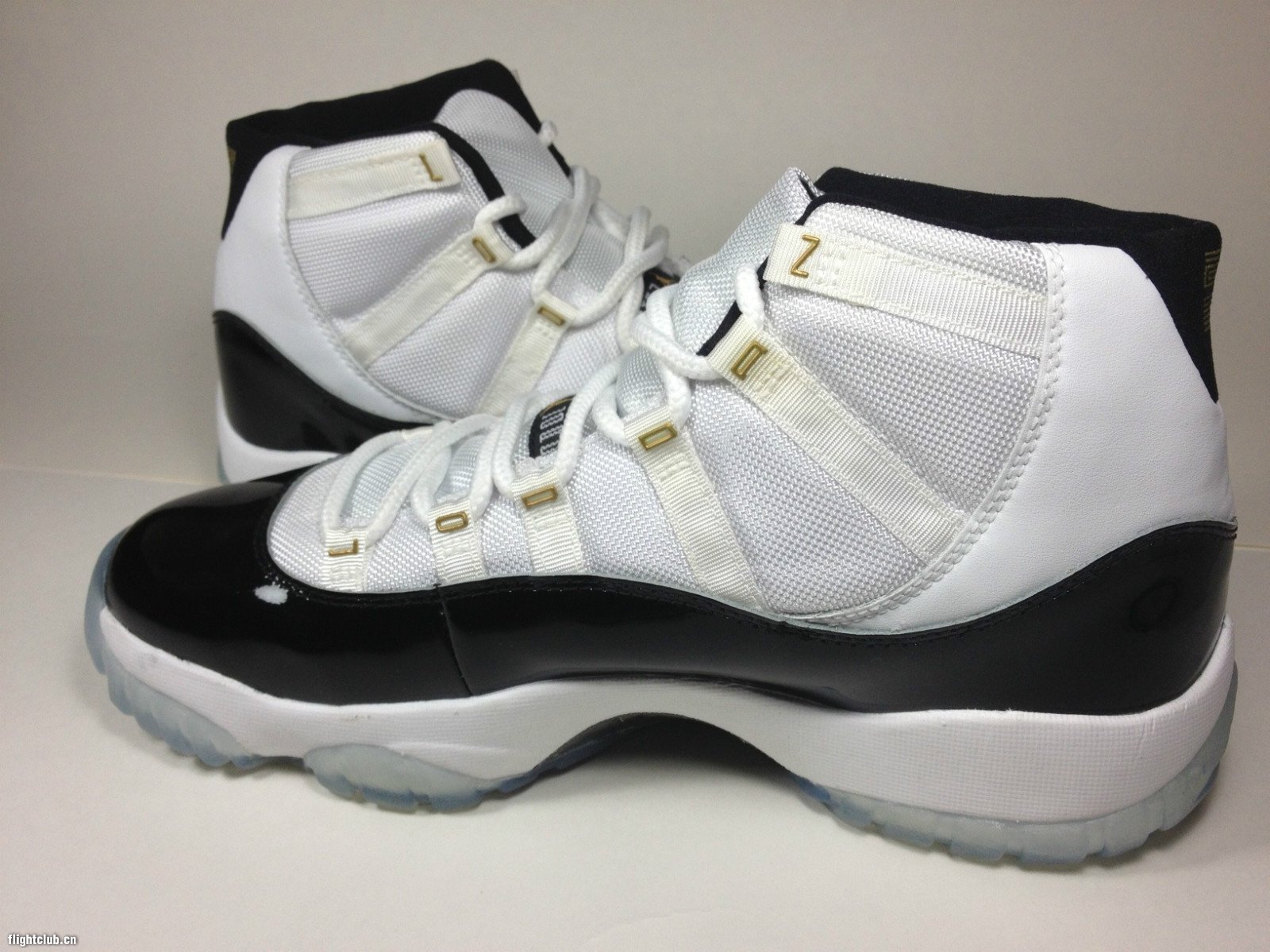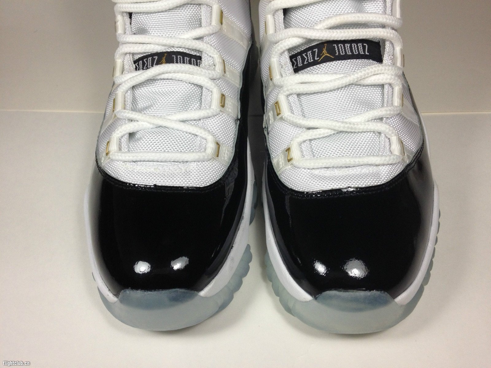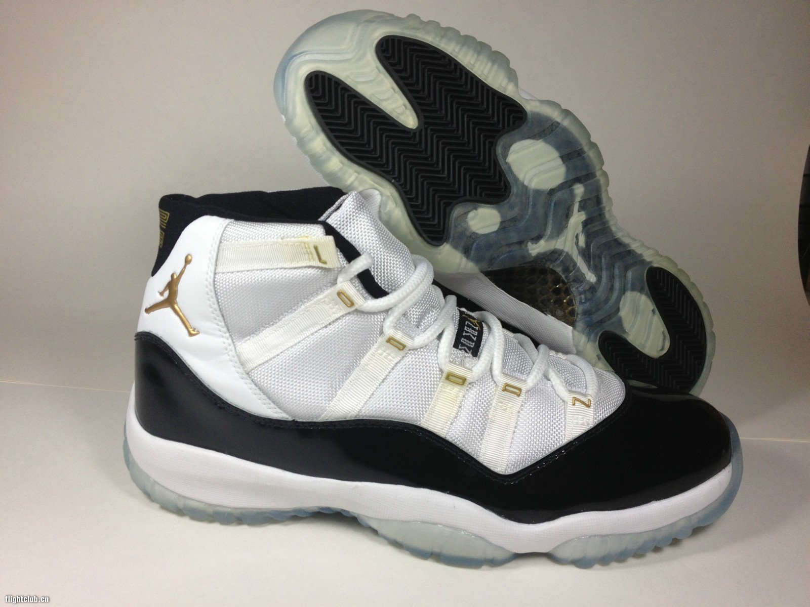 一双金扣版本的 Air Jordan 11 在 eBay 现身,售价为 $1499 美元,折合人民币 ¥9200 元左右。 这双黑白 Air Jordan 11 "DMP/Concord" 的亮点之处在于增加了金黄色的金属鞋带扣,并且是字母 "JORDAN" 字样的设计。而后跟的飞人图案和数字 23 也是金黄色,整体效果显得十分抢眼。 这双鞋属于 DMP 套装的非市售版,而市售版的 Air Jordan 11 DMP 没有金扣。