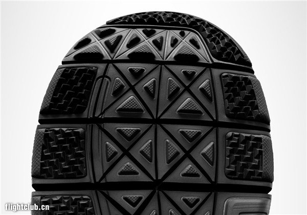 足跟和前足外底设有三角形节点图案的硬质橡胶,在不同的地面上均能体现出色的抓地力和耐久性。