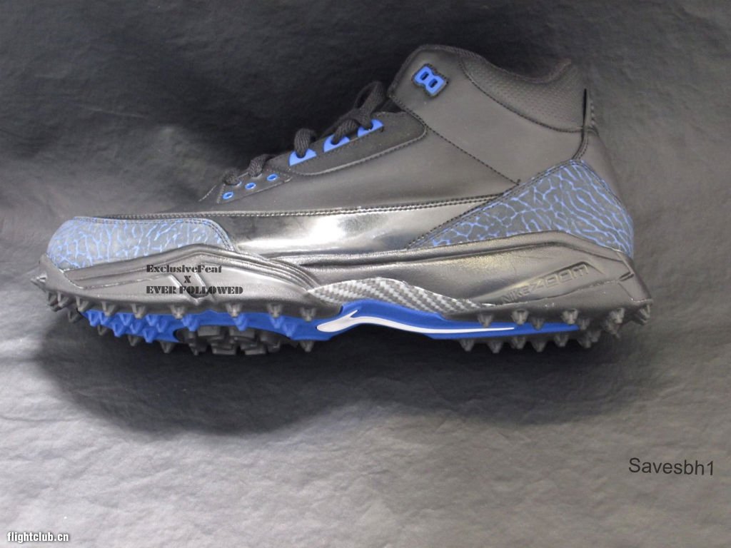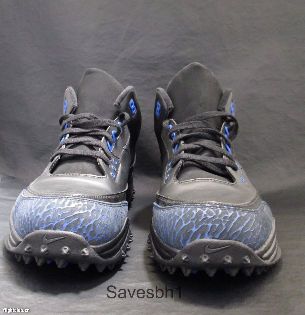 在与圣地亚哥电光队签订合同之前,Dwight Freeney在印第安那波利斯小马队效力了11年。眼前这双Air Jordan 3 PE便是为其在小马队时期所打造。黑色主色调搭配皇家蓝色点缀,优质皮革辅以漆皮,中底碳板尤为醒目。此款橄榄球鞋PE现正在eBay出售中。