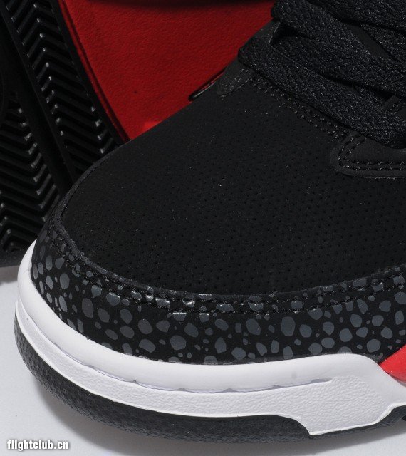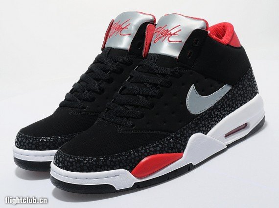 类似Air Jordan III的鞋身配上Air Jordan IV的外底再辅以黑/红色调,颇有AJ系列黑红配色的复古感,细节配上银灰色点缀,此款Nike Air Flight Classic现已发售。