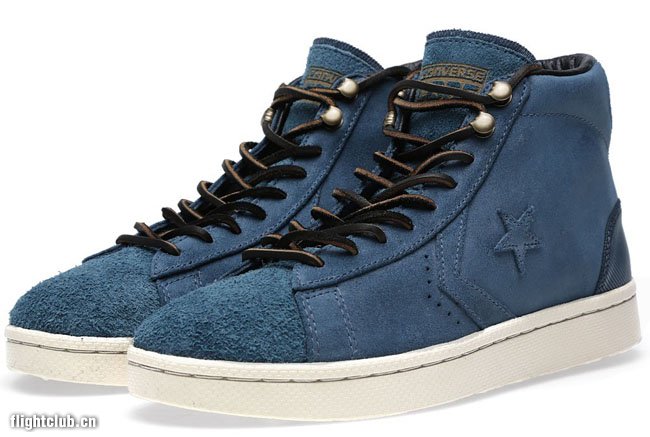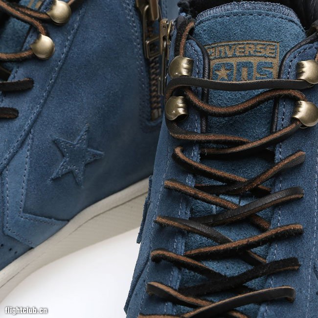 Converse First String支线推出全新 Pro Leather Mid Zip “Orion Blue”鞋款,鞋身由深蓝色麂皮打造,搭配金属鞋带扣与内衬拉链显得极具质感。此鞋款现已发售,售价:85欧元。
