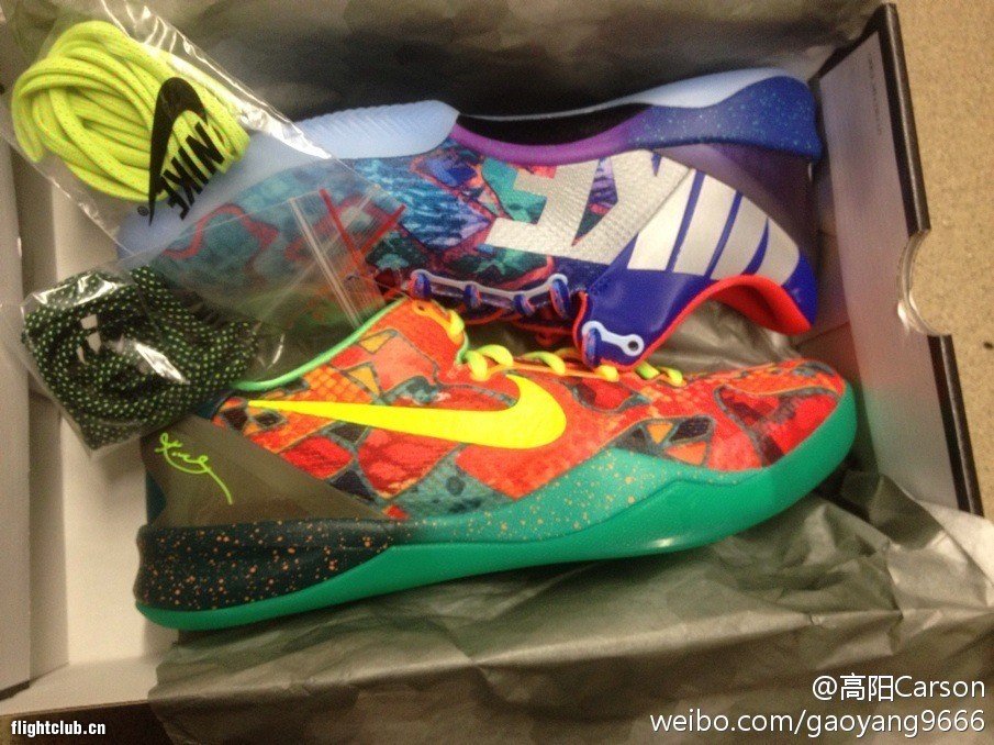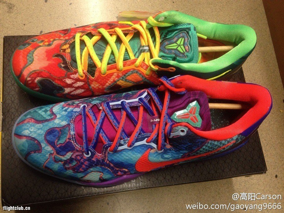 微博上今日再次曝出有关Kobe 8 System“What The Kobe”的全新信息:左右脚分别融合了多双Kobe 8 System的细节打造,显得极具特色,并附送两双鞋带。据悉此鞋将于NBA中国赛期间正式发售,货号:635438-800。有关此鞋的更多信息,请关注我们的后续报道。