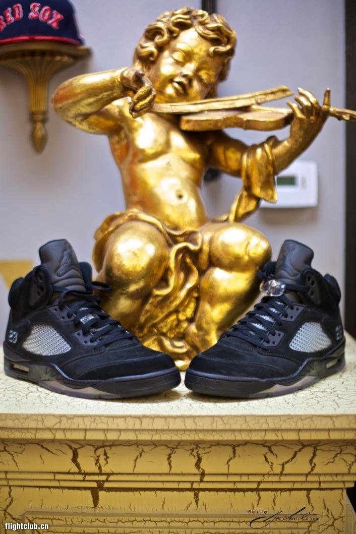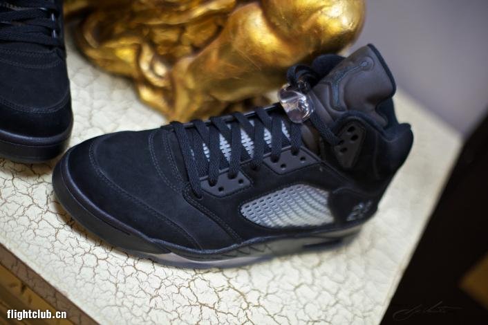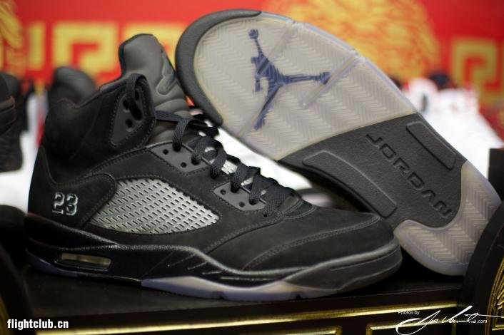 这款非市售版本的 Air Jordan 5 "Blackout" 有了更多的清晰图片。此鞋款采用了黑色的鞋面,3M 鞋舌和中底也是一黑到底。鞋帮上的数字 23 刺绣则采用了黑灰两色。 目前尚无市售信息。