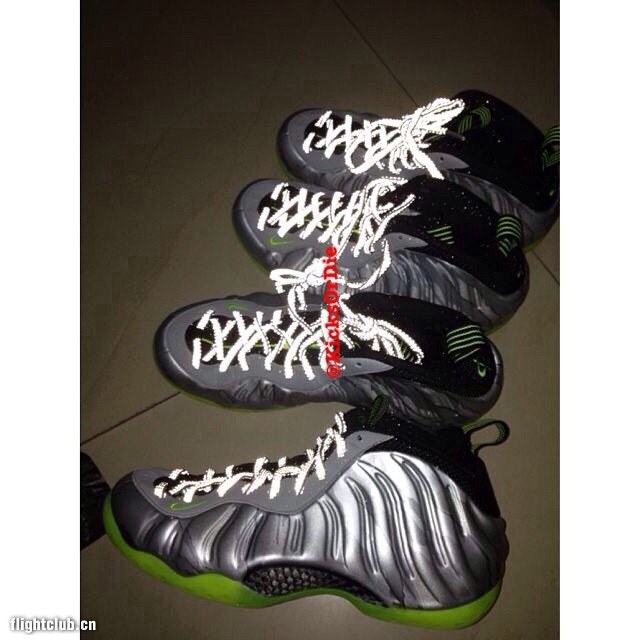 这款已经曝光过的 Nike Foamposite One "Grey/Volt Camo" 目前有了更加清晰的实物图片。采用了银灰色虎纹的鞋面,搭配荧光绿大底,另外鞋带带有 3M 亮点。 暂时还没有具体的发售日期,不过相信上市发售已经不远了。