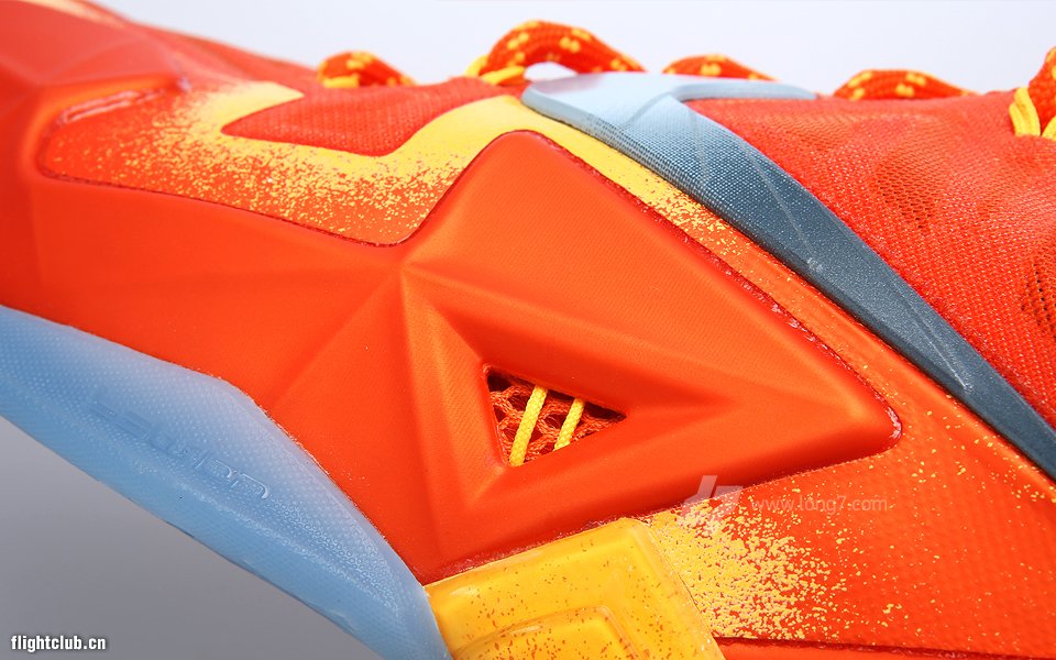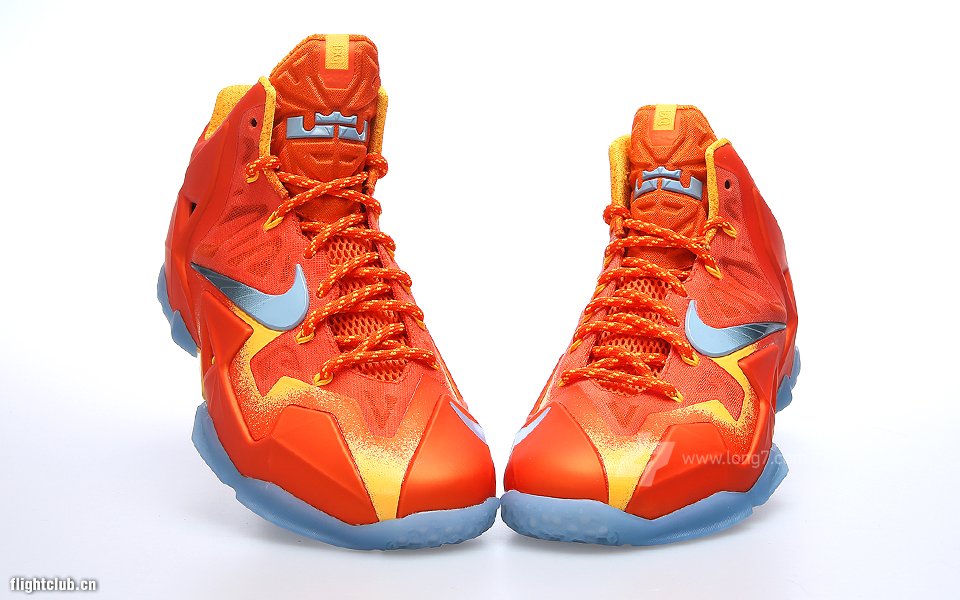 Nike LeBron XI“Preheat”,亮橙色鞋身搭配水晶大底,橙黄色泼墨设计与银色渐变Swoosh点缀鞋面之上。据悉此配色数量极为稀少,并将于近期上市,售价:1599RMB。货号:626376-800 都市橙/浅军械蓝-激光橙
