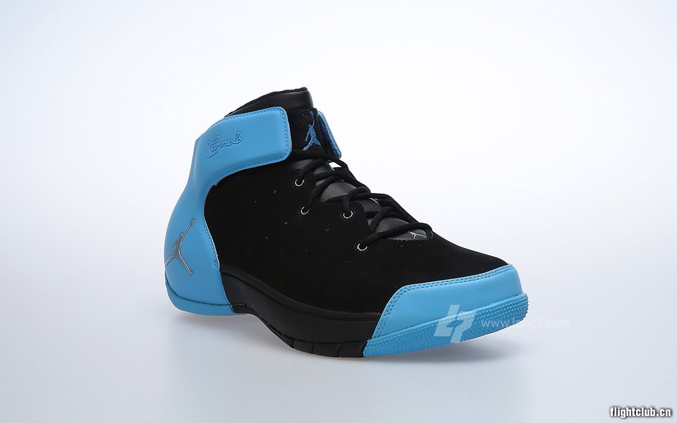 Jordan Melo 1.5“黑北卡" 黑色麂皮鞋身搭配北卡蓝后跟及鞋头,安东尼签名点缀鞋面之上,鞋底则有“BMORE”及“5-29-84”等细节。此鞋将于2014年初上市,售价:949RMB,货号:631310-007。