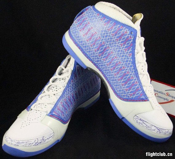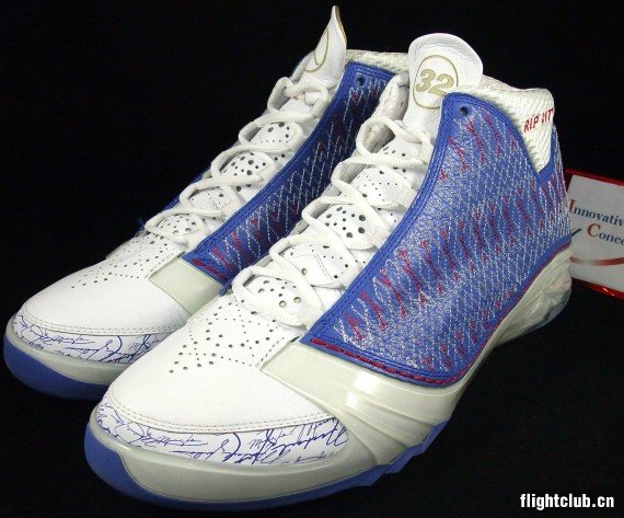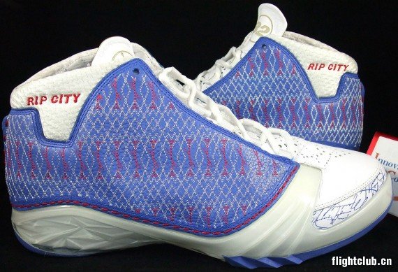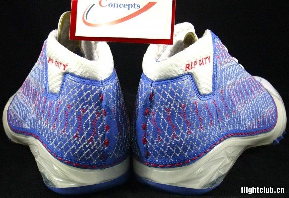 对于Michael Jordan以及Jordan Brand最重要的23周年,旗下所有球员都有福利,那便是能够拥有专属Air Jordan XX3 PE,比如眼前这双。为Rip Hamilton打造的活塞配色PE,皇家蓝色皮质鞋面附有繁复华丽的车线装饰,脚踝部分绣有RIP CITY字样。现在这双PE正在eBay出售中。