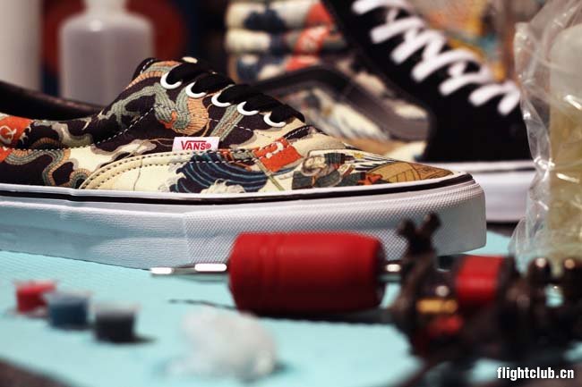 此番,UBIQ 牵手 Vans 旗下正值创立10周年的高级支线 Vans Vault ,以日本传统纹身艺术为灵感,由日本三大纹身店之一的纹身师 Hiroshi Hirakawa 所佛年完成。鞋面上绘制了一副载有 Vans 鞋盒的货船,货船上的武士也穿着着 Vans Sk8-Hi 鞋款,并准备与天上的神龙对决的场景。该系列包含了 Era 以及 Sk8-Hi 两款鞋,充满了浓浓的日本传统风味。据悉,该系列将在11月9日发售,具体发售详情仍未公布。