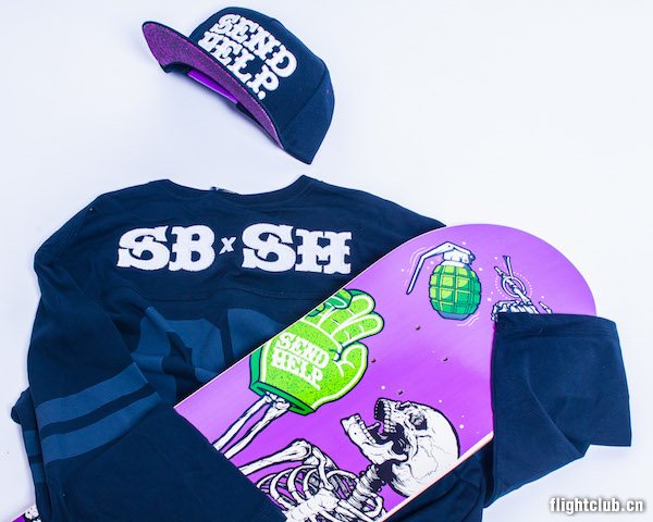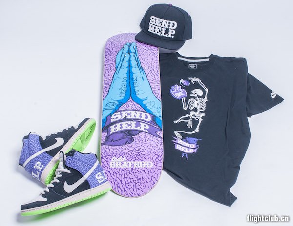 随着第二代Nike SB Dunk High “Send Help”的临近上市,Nike也公布其配套商品的消息。除了备受关注的鞋款之外,还将推出配套主题的联名滑板、棒球帽及纪念T恤。此系列已于近日在Familia Skateshop上市。