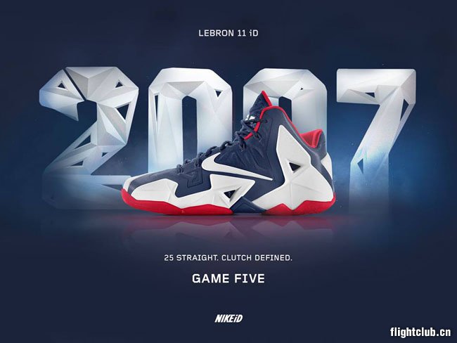 时间来到2007年,此番NIKEiD官方推荐的配色,其灵感来自东部决赛的第五场比赛,最后一轮面对底特律活塞,第五场最后一节骑士队的28分里有25分是由球队领袖LeBron James贡献,赢得比赛也让他们赢得了踏入总决赛的资格。