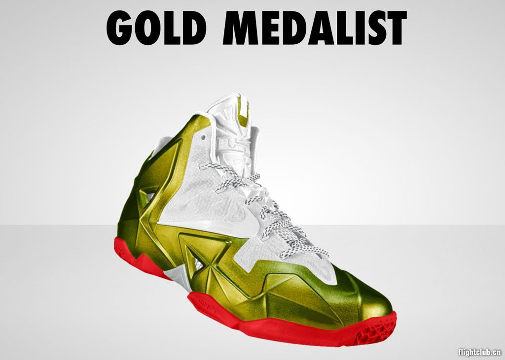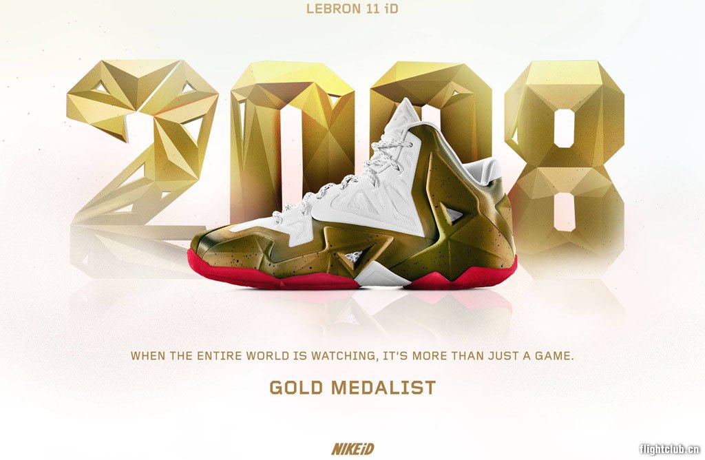 赢得NBA总冠军后,LeBron James在北京奥运会上与整个国家队的队员们一同击败西班牙并尝到了金牌冠军的味道。以此金牌时刻为灵感,NIKEiD官方推荐LeBron 11 iD 2008年金牌得主配色,白色Hyperfuse搭配金色chroma效果Hyperposite,再辅以红色大底。