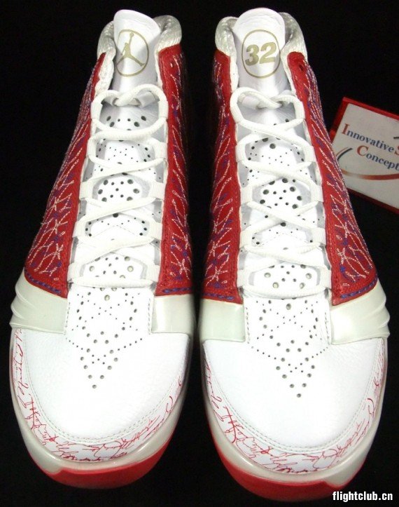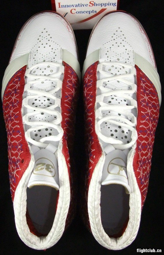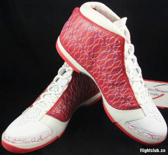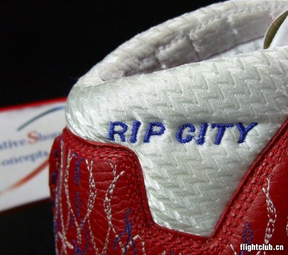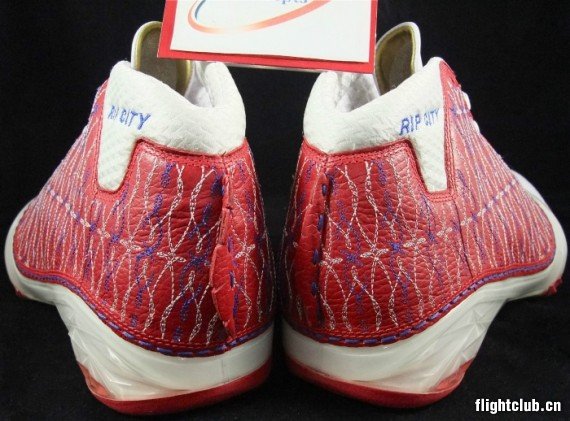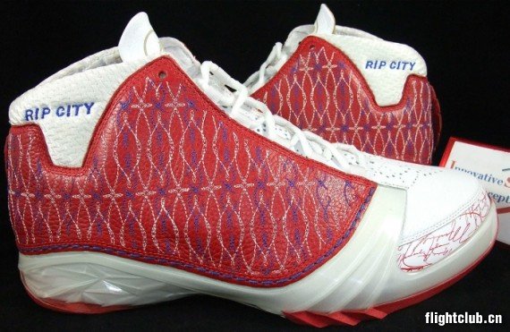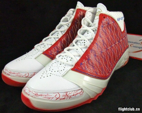 眼前这双特别的Air Jordan XX3是为Rip Hamilton在活塞队时期打造的替换配色PE,红色皮革鞋身附有XX3刺绣纹理,配上鞋头红色MJ签名点缀以及脚踝处皇家蓝色RIP CITY刺绣,此双PE现正在eBay出售中。