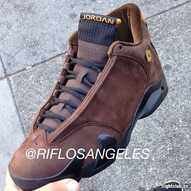 一双未曾曝光的Air Jordan XIV样品在网上露面,这款于2005年制作并且仅停留在观察样品阶段的Air Jordan XIV选择巧克力色麂皮打造鞋身,内衬选用丝绒材质搭配,再辅以黄色细节点缀,整体质感不俗。
