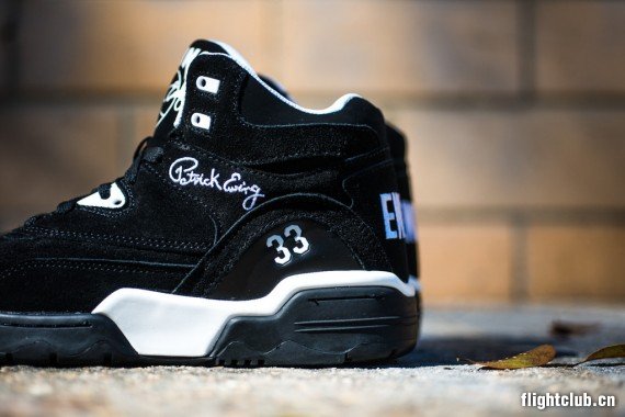 近日黑白色的版本的Ewing Guard曝光于网络,鞋身以黑色麂皮材质为主,细节处装饰全部使用白色,搭配白色内衬,低调简约的装扮突显沉稳的整体质感。