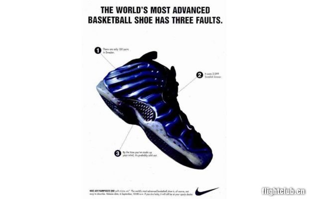 在Nike简单而又经典的印刷广告中,一只球鞋静静地躺在白色背景中,只有一个Swoosh和一个电话号码,Air Foamposite One从未这么美过。悲剧的是,这个电话号码是无法接通的,我们本以为能打过去跟Lil Penny说几句话。