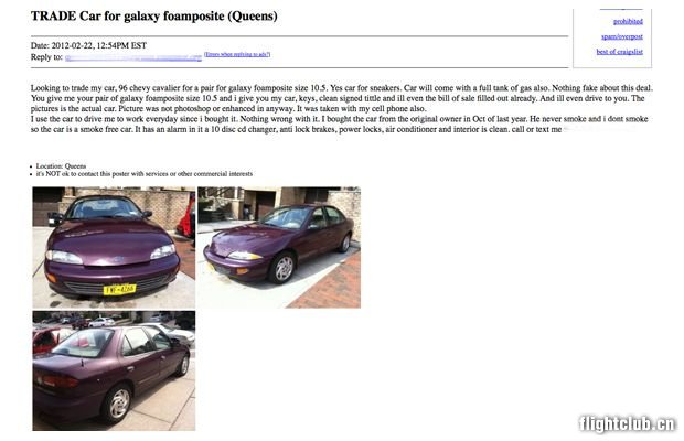 当人们的热情达到顶点时就会有疯狂的事情发生,这哥们儿真的想用他的汽车,还是满油的,交换一双“银河喷”。告诉我这不是真的。。。