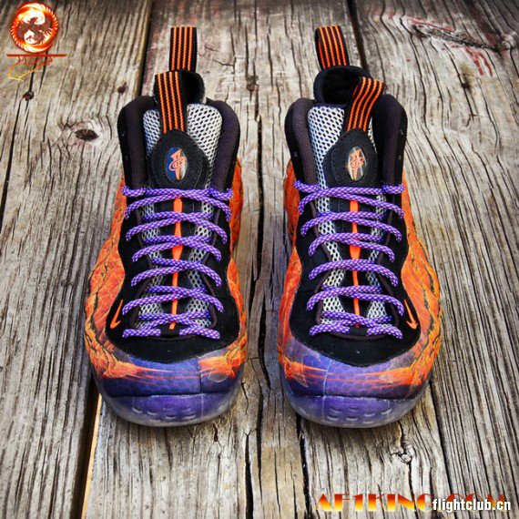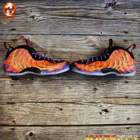 著名球鞋定制团队 Gourmet Kickz 又有新作释出,此次其又推出了一款 Nike Air Foamposite One “Phoenix Rising” 定制作品。鞋款以“凤凰城”菲尼克斯为灵感,Gourmet Kickz 在这款喷的鞋身上注入了犹如火焰般的橙色压花图案,配以紫色的鞋带以及细节点缀,后跟则加载了一个特制的凤凰 Logo,而更值得一提的是,这款鞋的鞋身还带有夜光效果,就和它的名字 “Phoenix Rising” 一样,带着一股浴火重生的生命力。