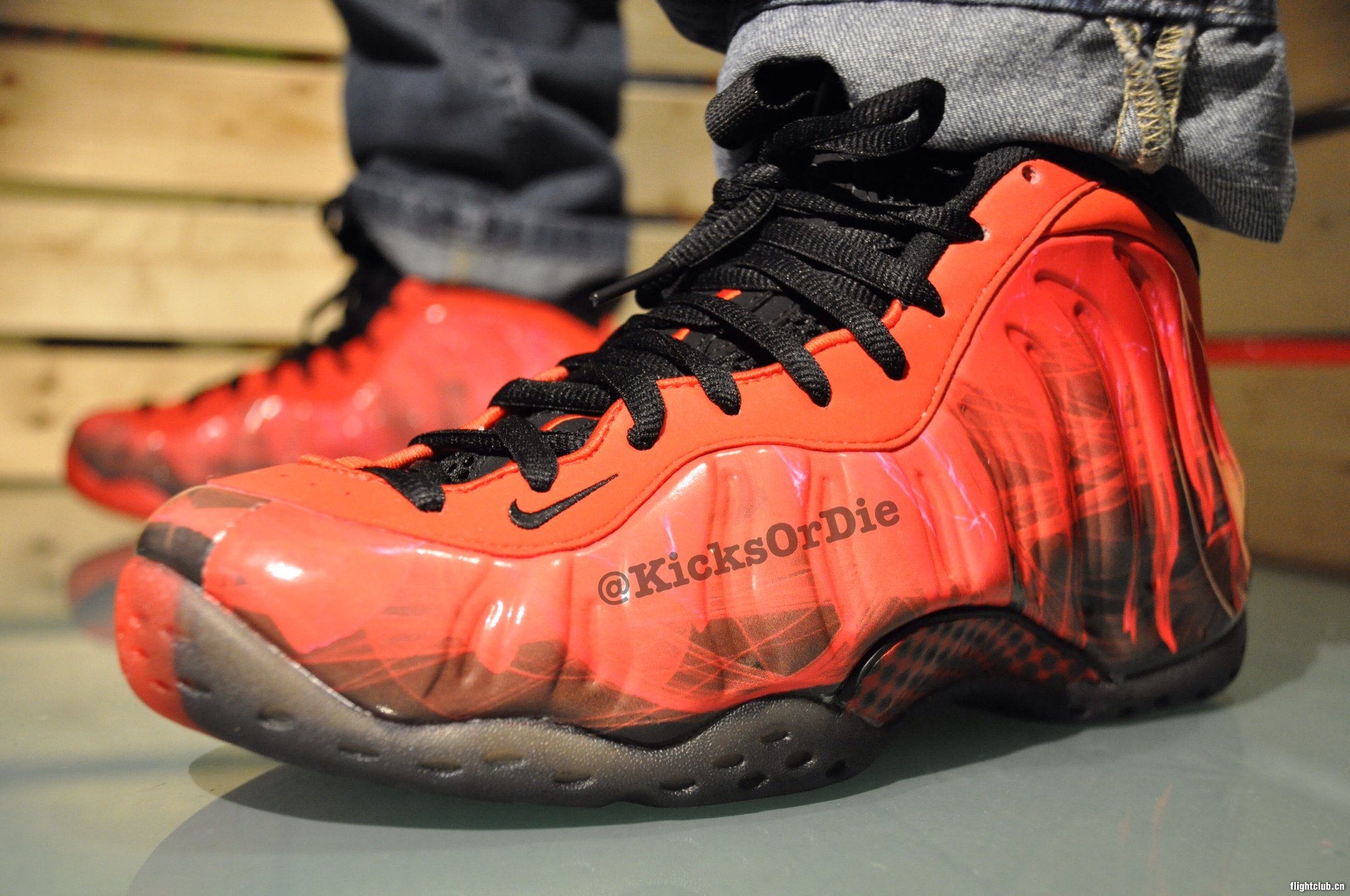 原定于本周六在美国地区全系列发售的十周年Doernbecher Freestyle鞋款推迟至11月23日,而网上则再次曝出其中Nike Air Foamposite One鞋款的上脚效果照,以热火为灵感的鞋身搭配阴阳大底,整体效果极其惹眼。