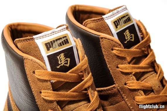 马年未到,鞋款先来。Puma正式率先发布品牌为2014马年打造的生肖鞋款Puma Suede,系列包含淡棕色、深棕色、高帮以及低帮四双,鞋款后跟印有金色的“馬”字,鞋舌同样出现此元素,而从鞋盒包装的设计来看,此番设计的灵感来自象棋。1月1日正式发售。