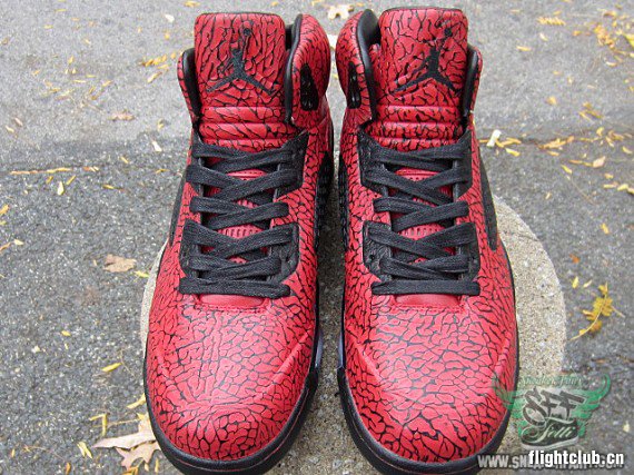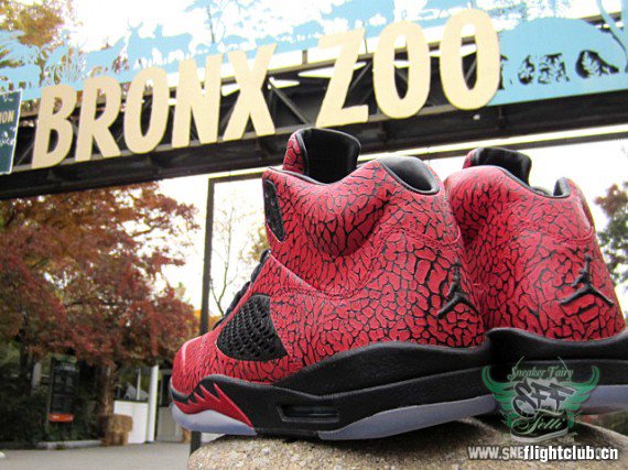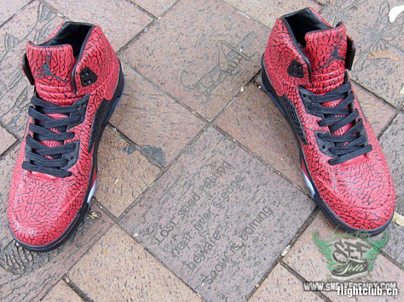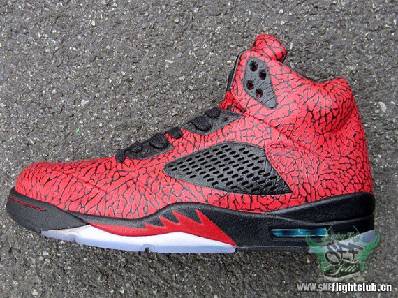 眼前的这款定制作品就好像将“愤怒的公牛” 以及 “3Lab5” 配色合二为一了一样,这款出自于 FETTi D’Biasi 之手的 Air Jordan “RageLab5″ 定制作品以全红色的满版式爆裂纹设计给人带来了强烈的视觉冲击力。不知道各位觉得这款作品效果如何呢?