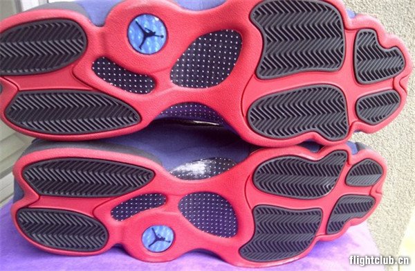 作为Jordan Brand 的成员,曾经的鹰王乔约翰逊自然有过不少专属PE。这双Air Jordan 13 老鹰队客场PE在鞋舌上绣有乔约翰逊的个人Logo。配色方面相对简单,使用了黑紫色搭配,外底则以红色打造,与老鹰队的客场队服相呼应。