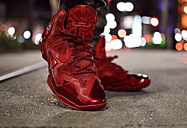 让我们一起来欣赏一下一双全红配色的 LeBron 11 NIKEiD "Red October",这双 NIKEiD 球鞋所有的元素都运用了抢眼的大红色,在 LeBron 11 富有质感的发泡材料和现代化设计的映衬下,整体效果十分突出。