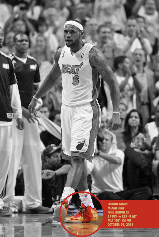 今天 LeBron 11 "Forging Iron" 在中国地区正式发售,这款以熔炉锻造为灵感的配色象征着詹姆斯势不可挡的实力来自于不断的磨练。 詹姆斯在之前对阵公牛的比赛中穿着了这双球鞋,就让我们一起来欣赏一下詹姆斯的上脚实拍。