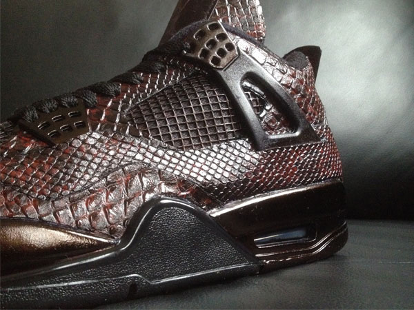 如今球鞋定制作品层出不穷,我们每天都能看到不少来自全球各地定制爱好者的作品,但是当这款 Air Jordan 4 “Eiffel Tower” 出现在小编眼前时,还是给人眼前一亮的感觉。鞋款采用了棕色的仿蛇纹材质覆盖鞋身,质感满载。但是唯一美中不足的是,设计师声称这款作品的灵感源自埃菲尔铁塔,各位能看出鞋款与这一巴黎地标有什么联系么?