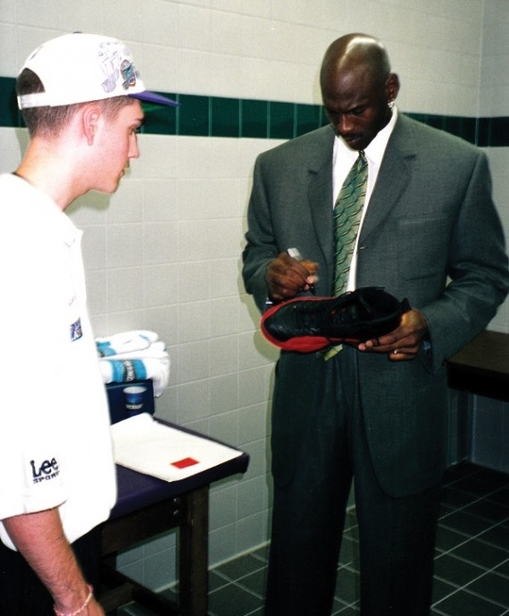 在对阵爵士的赛后,乔丹将上场穿着的球鞋赠送给了一名爵士队的球童,上面带有他的亲签。16 年后,这位当年的球童决定将这双球鞋拿出来拍卖。