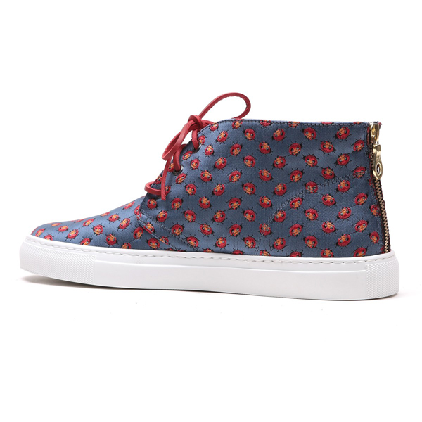 总是有着源源不断创意的迈阿密人气鞋履品牌 Del Toro 近日又发布了一款极为新颖的 Alto Chukka 全新配色,这款 "Lady Bug" 配色以淡蓝色的丝质混纺棉质制成鞋身基底,并以卡通形式的瓢虫图案覆盖鞋身,极具设计玩味。细节方面。后跟处标志性的金属拉链以及红色的皮革鞋带也为鞋款增色不少。据悉这款 Alto Chukka "Lady Bug" 配色现已在 Del Toro 线上店铺发售。