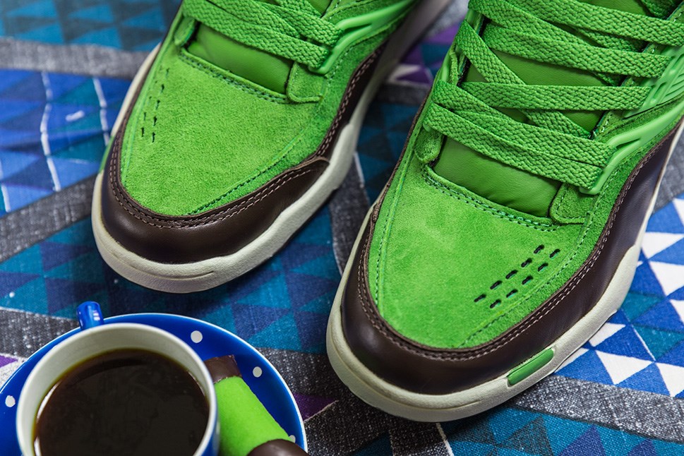 Sneakersnstuff发布与Reebok联手打造的11月限定合作鞋款,一双配色特别的Twilight Zone Pump。鞋身选用绿色麂皮搭配棕色皮革,绿色象征绿杏仁蛋白软糖,棕色代表巧克力,因此此双配色的灵感源于瑞典一款颇有历史的有趣甜品。11月27日Sneakersnstuff以及网店独家发售。