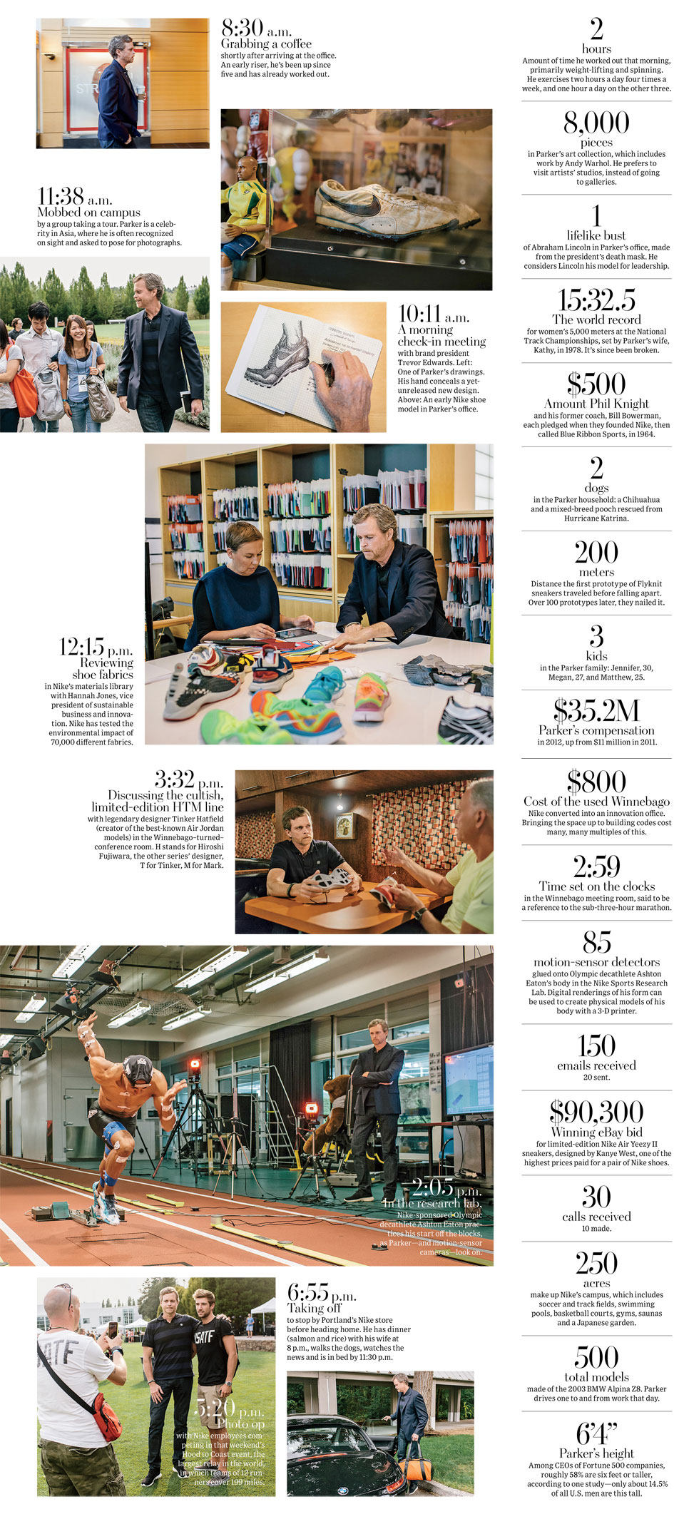 近日,美国《华尔街日报》撰写了一篇有关Nike CEO Mark Parker的报道。这篇文章记录了Mark Parker的一天:从早上5点起床到晚上11点半睡觉的所有历程,并曝光了Mark Parker那如同宝库一般的办公室。