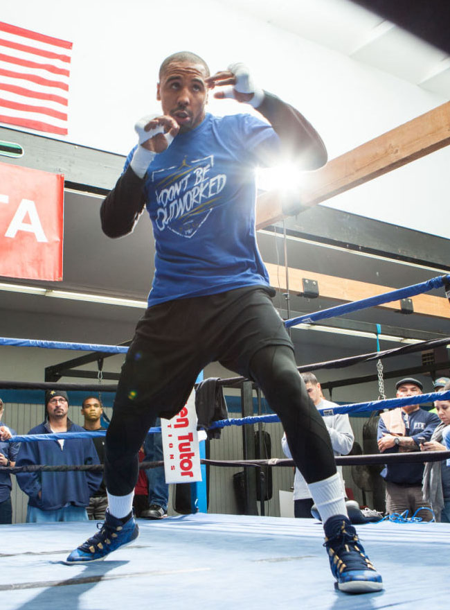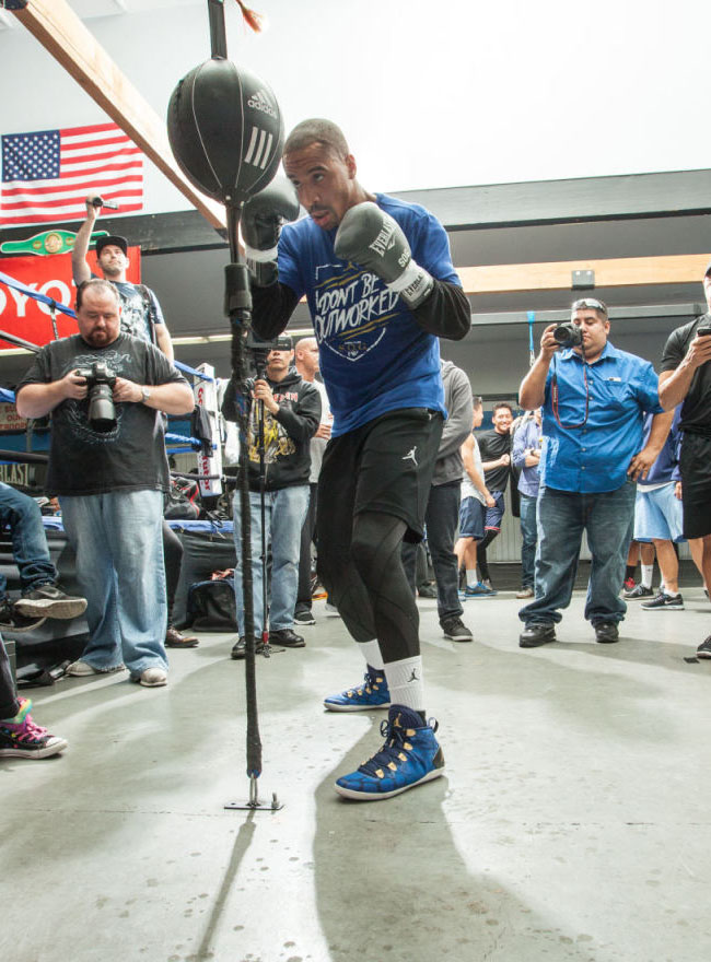 14个月后中量级冠军Andre Ward重回拳击场,而他在开赛前也如大家所愿换上了Jordan Brand为其特别打造的Air Jordan XX8 SE拳击靴亮相,从篮球场装备转换为拳击靴,会有多少科技被保留呢?