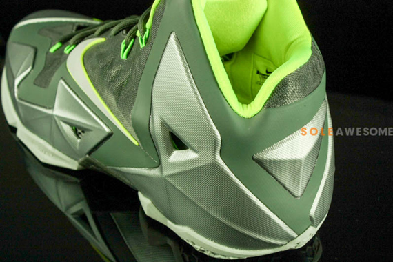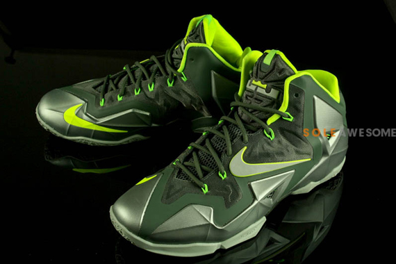 延续以往荧光色调,此番Nike LeBron 11的Dunkman版本将鞋身主色调改为军绿色,细节依旧荧光色点缀,鞋垫则选择紫色衬出经典的Dunkman logo。初定11月底发售,货号616175-300。