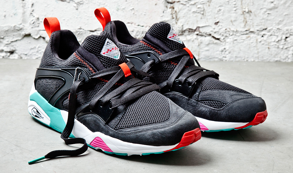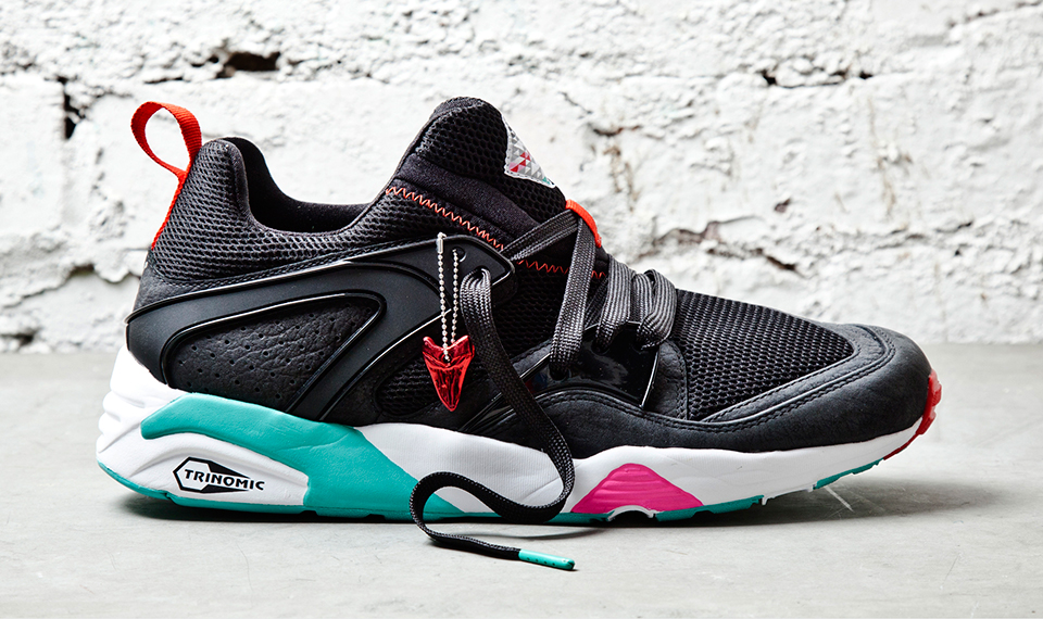 Sneaker Freaker联手PUMA打造的全新合作版Blaze of Glory即将发售。此番合作的“鲨鱼来袭”是对07年合作版的进一步设计,鞋身黑色网面搭配褶皱牛巴革,细节辅以红色、水蓝色以及粉色点缀,后跟拉环印有Sneaker Freaker logo,随鞋附赠一个鲨鱼牙齿吊坠。11月23日Sneaker Freaker网络店铺率先发售,11月30日登陆全球部分店铺。