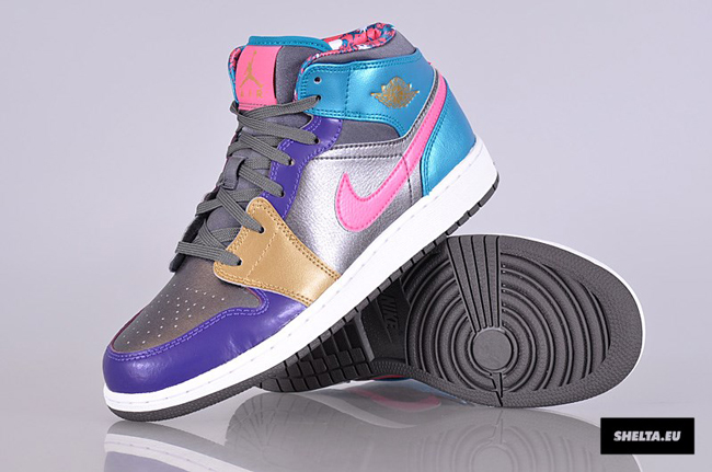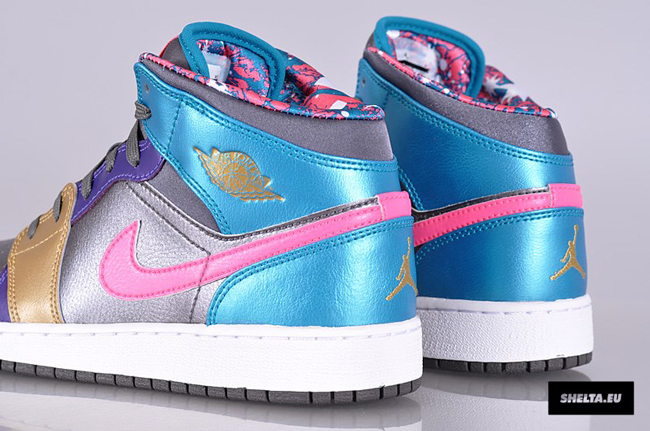 近日 Jordan Brand 专为女鞋迷准备了多款全新配色的 Air Jordan 1 Retro Mid,此番小编为大家带来的这款配色必定又将成为一款褒贬不一的版本。鞋款以银灰色的亮面皮革为基底,再分别配以蓝、粉、紫以及土黄色的色块点缀,内衬则以蓝粉色迷彩感觉呈现。目前还没有这款配色的具体发售信息,各位MM感觉如何?