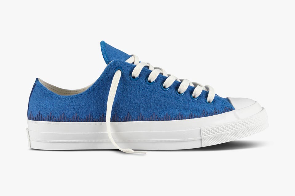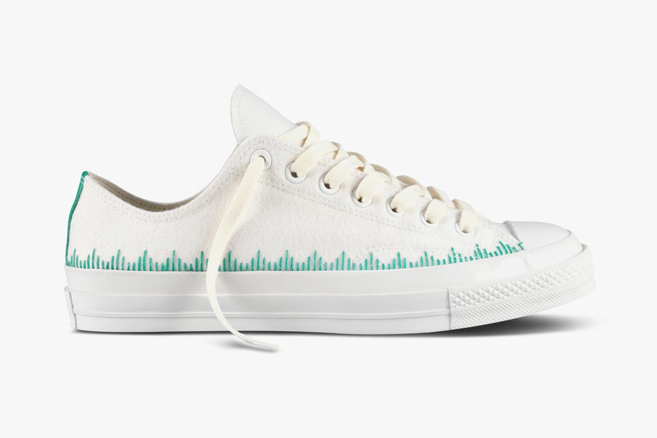 Converse 高端支线 First String近来动作不断,此次携手加州著名店铺Union以经典鞋款1970s Chuck Taylor All Star为蓝本设计,打造出全新合作系列。该系列以出色的质感为卖店,鞋身以羊毛毡鞋面搭配羊皮内衬打造而成,并配以亮色大底。