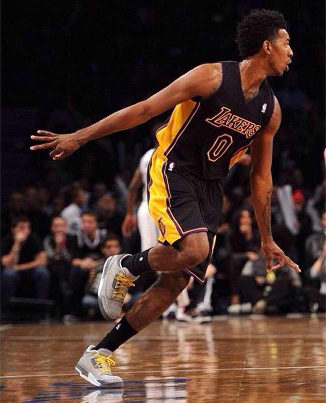 尼克杨在今天的比赛中终于没有再次穿着 Kobe 8 了,而是上脚了一款酷灰配色的 Air Jordan 3 Cool Grey。 这款 Air Jordan 3 采用了灰色的鞋面和灰色的鞋舌,搭配白色的中底和黑色的大底。2006 年曾经发售过这款配色,尼克杨换上了比较亮眼的鞋带。