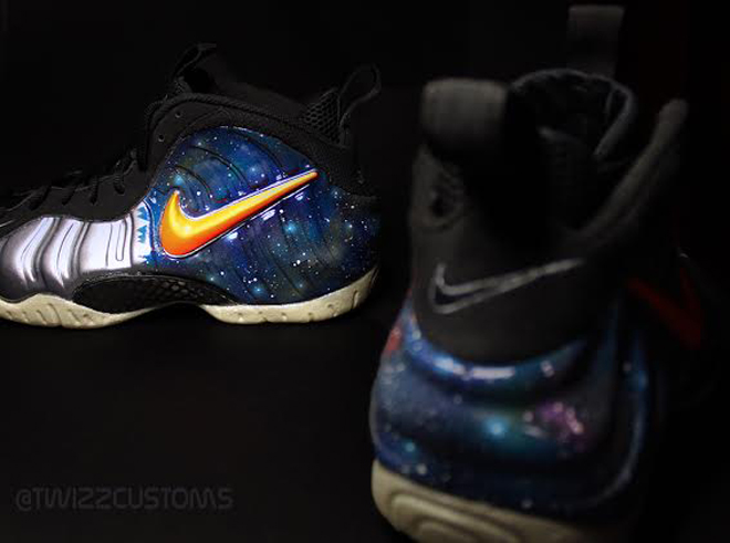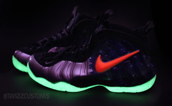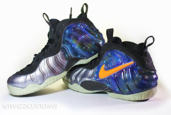 “银河喷” 至今在很多鞋迷朋友心中都视为神物,此番球鞋定制爱好者 Twizz Customs 便以此为灵感,将银河理念移植到了 Nike Air Foamposite Pro 之上,打造出了这款名为 “UFO Galaxy” 的定制作品。除了浩瀚银河般的鞋面设计之外,这款 Air Foamposite Pro “UFO Galaxy” 的大底还以夜光材质打造,相当绚丽。
