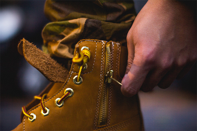 四十周年庆典的 Timberland 特别联手 Stussy 推出限定版靴款。在经典款的大黄靴基础上,又增加了一些精心打造的元素,金色鞋带孔及特别的鞋舌设计都让人过目不忘,鞋帮上的 Timberland LOGO 也换成了金属打造,本来就很阳刚的大黄靴变得更加刚性十足,而又不失细腻的风度。