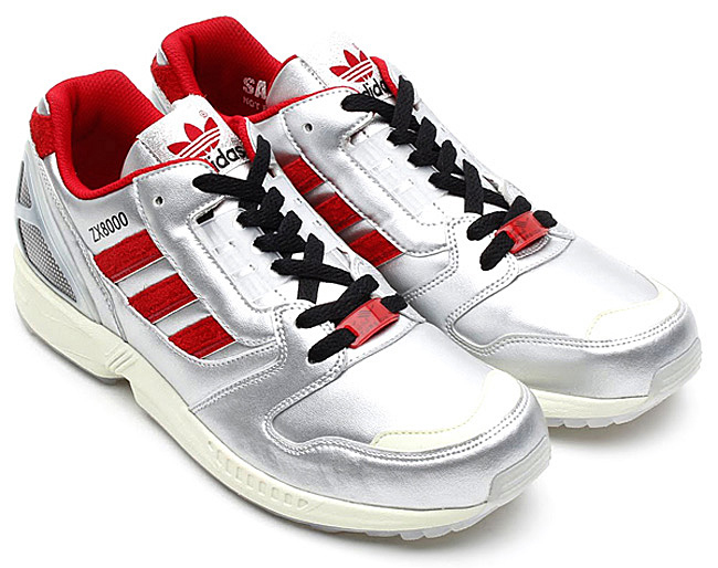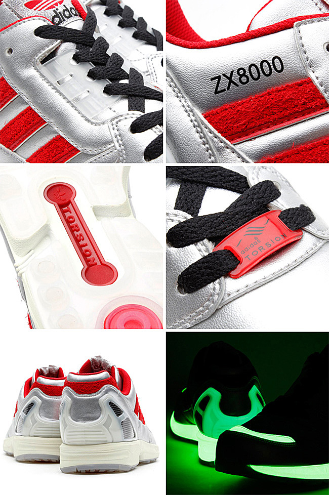 为庆祝 atmos 新宿店开业,此番 atmos 邀请到老朋友 adidas Originals,再次以双方的拿手好戏 “夜光” 为设计主题,打造出了这款联名版本的 atmos x adidas Originals ZX8000 "Glow In The Dark"。鞋款采用了极具金属质感的银色亮面皮革打造鞋身,配以红色的三杠标志以及细节点缀,并在鞋头以及大底上注入夜光材质。据悉鞋款或将在12月7日正式发布。