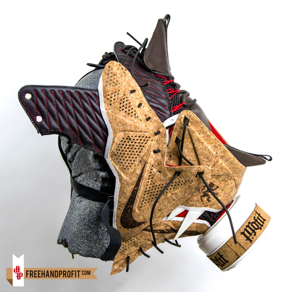 艺术大师 Freehand Profit 近日又为广大鞋迷朋友带来了一款最新的球鞋面具作品,此次大师采用了 Nike LeBron 10 “Cork” 为设计蓝本,将这款已成经典的“软木塞”重塑,打造出了这副 Sneaker Mask。