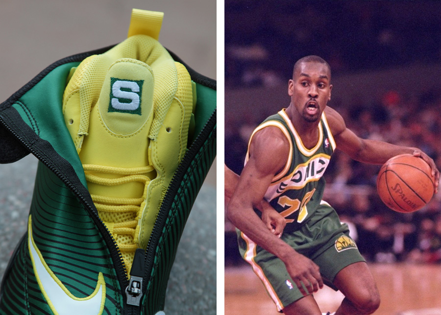 通过球鞋来体现一个球员的生活、球场下的兴趣以及爱好是常有的事,而对于Sole Collector与Nike合作打造的Zoom Glove来说,确定这样的主题并不难,因为设计灵感直接源于Gary Payton本人。绿/黄配色呈现西雅图超音速队的主题,鞋身多处细节体现Gary的个人元素,内靴鞋舌则刺绣Sole Collector的标志。此双Sole Collector x Nike Zoom Glove货号630773-300,12月7日美国地区Nike.com以及指定店铺限量发售。