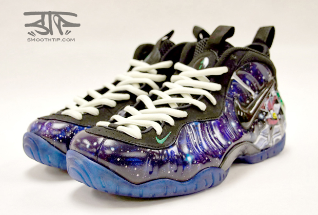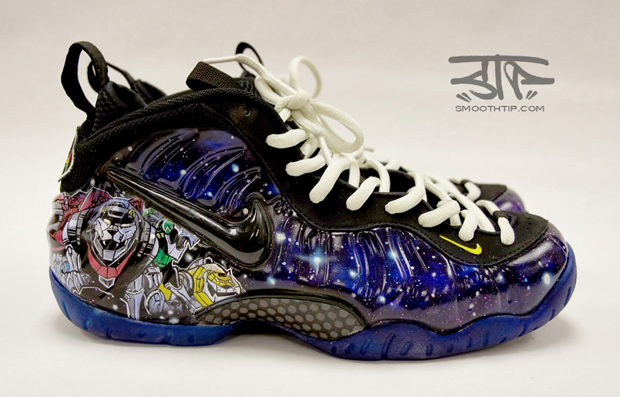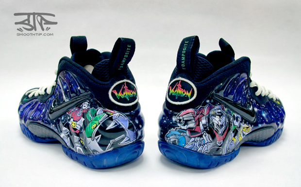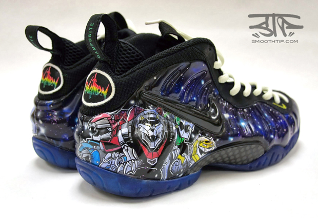 这双Nike Air Foamposite Pro定制作品以经典动画片《百兽王》为设计灵感,鞋身由银河图案涂装而成,并搭配蓝色大底。经典的“Voltron”Logo及动画人物点缀鞋身之上。值得一提的是,此鞋鞋面及鞋带都加入了夜光元素设计,黑夜降临时就能呈现出璀璨的“星空”!
