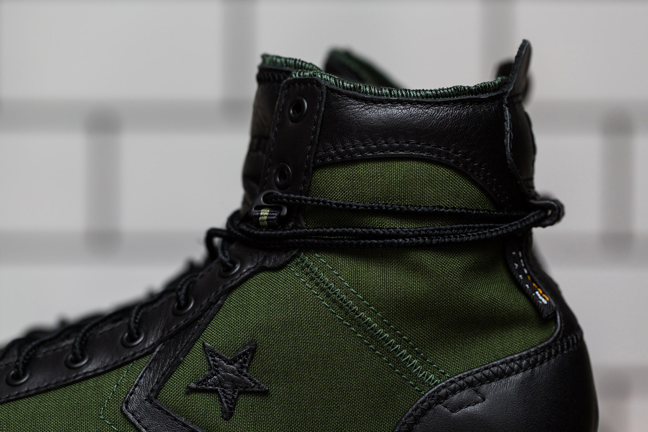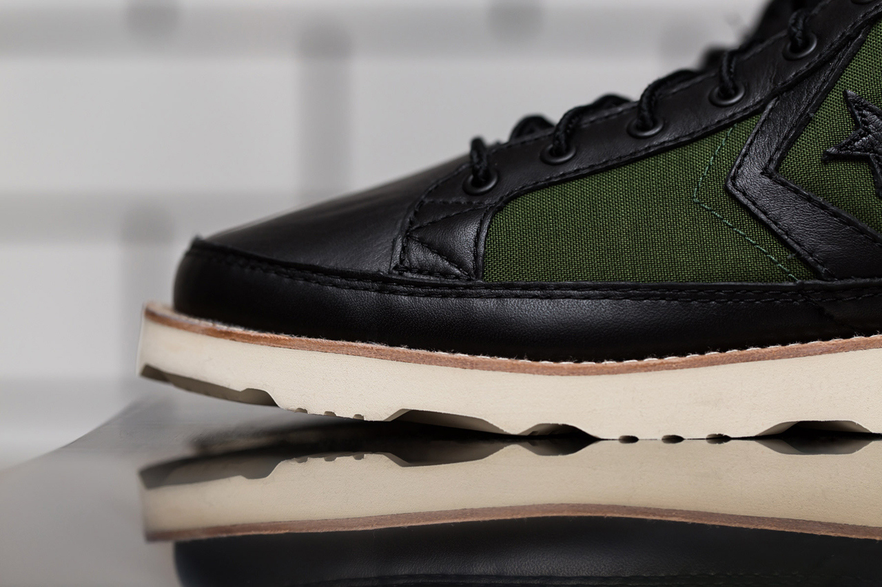 Undefeated x Converse 联名系列包括Auckland Racer与Pro Field Hi 两双鞋款。鞋款上设计上延续了Undefeated标志性的军事风,鞋身均采用绿色Cordura材质搭配黑色皮革制作而成,并点缀橙色细节。据悉此联名系列已于近日正式在指定店铺发售。