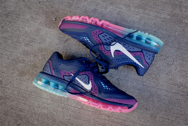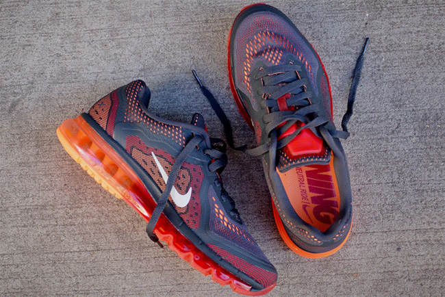 Nike Air Max 2014 延续了 2013 款的大部分外观设计,而在细节和科技方面却有了进一步的提升。 这次的新款跑鞋采用了无缝的 EM 材质鞋面,在轻薄透气的同时,也获得了更好的韧性,更加利于脚部的稳定。 彩虹渐变的外露式 Air Max Air Bag 则使得这双跑鞋更加的引人注目,在运动的同时,也是跑步者个性的体现。
