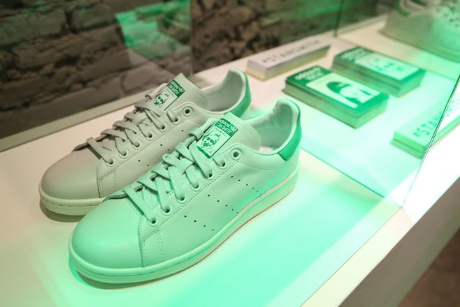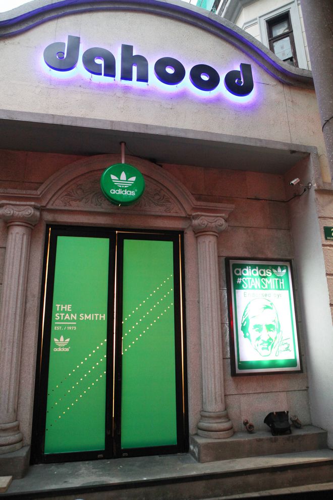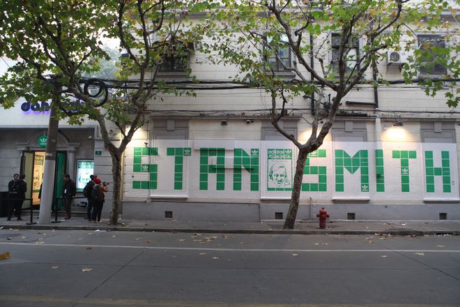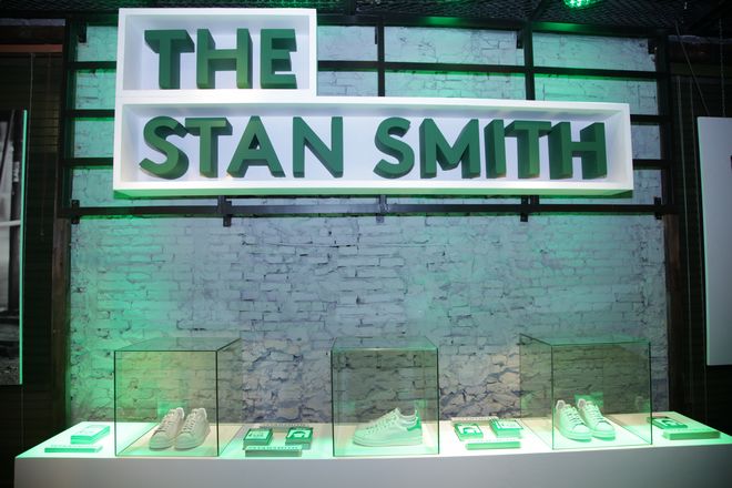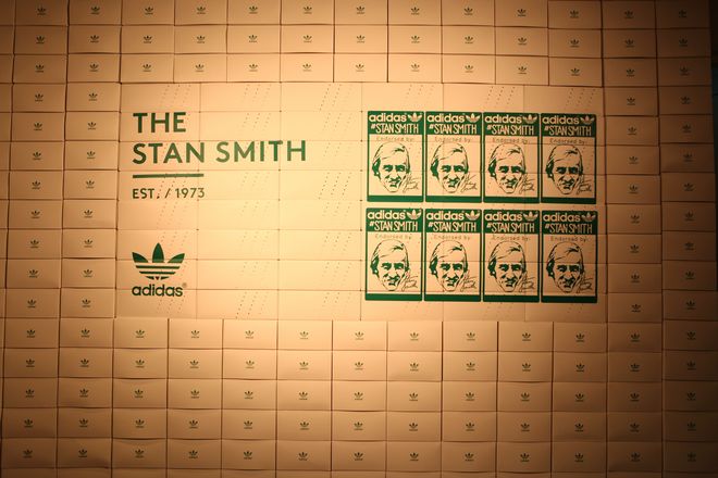 随着这双传奇鞋款的回归,12月6日在上海Dahood举行了一场发布活动。场地布置简洁时尚,呼应了“Stan Smith”鞋款的设计概念。入口处巧妙地用Stan Smith鞋盒拼凑成一道有绿白色Stan Smith标志的墙,呼应场内悬挂的多幅网坛巨人Stan Smith真人海报,齐向传奇喝彩。